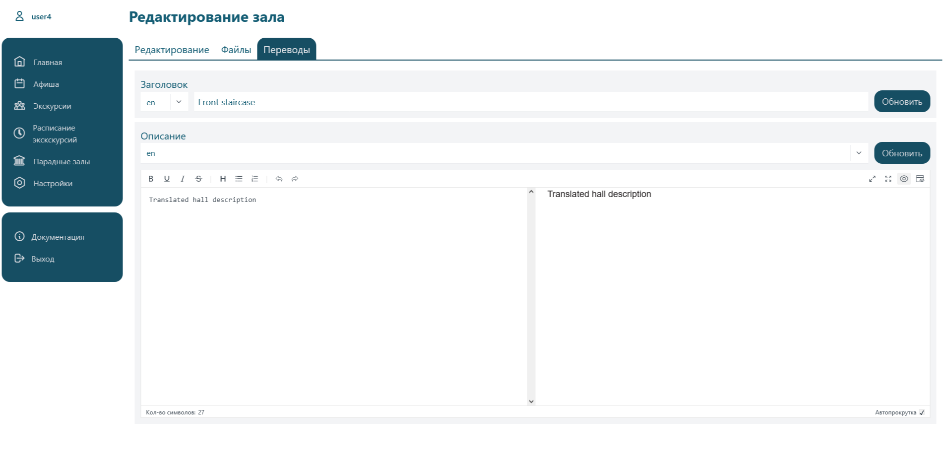 - Постер - отображается на карточке зала, на карточке зала при просмотре экскурсионного маршрута